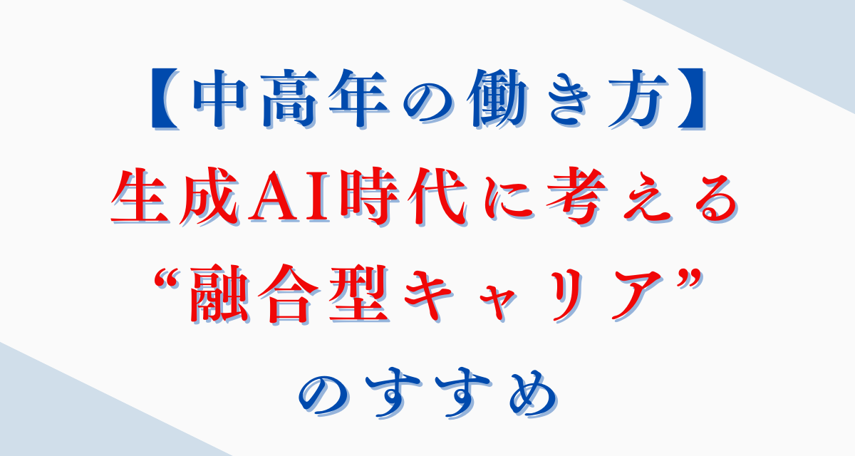 生成AIの進化により、仕事の効率化や柔軟な働き方が可能になった今、中高年こそ“融合型キャリア”(ワークライフインテグレーション)という新たな選択肢に注目すべき時代が到来しています。