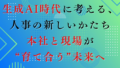 たとえば、評価やリーダーシップ、法務対応など、人間同士の関係性や文脈に応じた「答えのない問い」には、倫理観や常識、経験に基づく判断が求められます