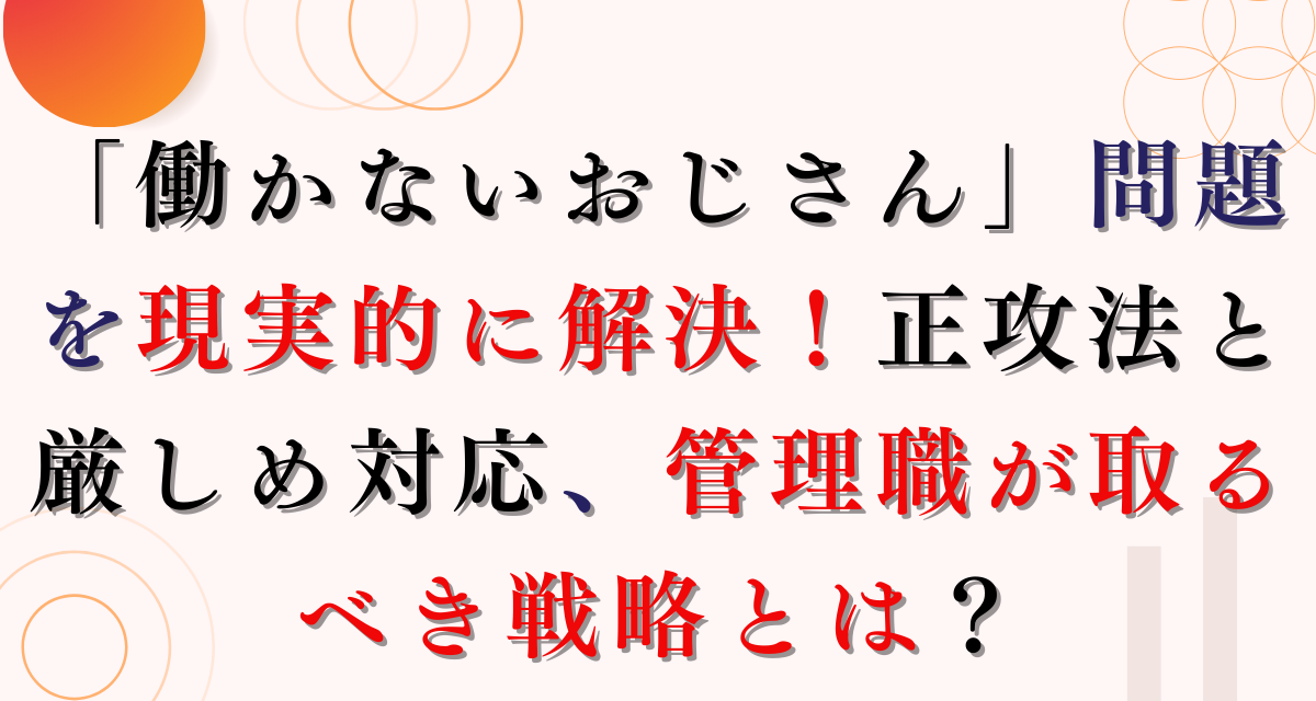 「働かないおじさん」問題は、管理職にとって非常に重く、簡単に解決できるものではありません。