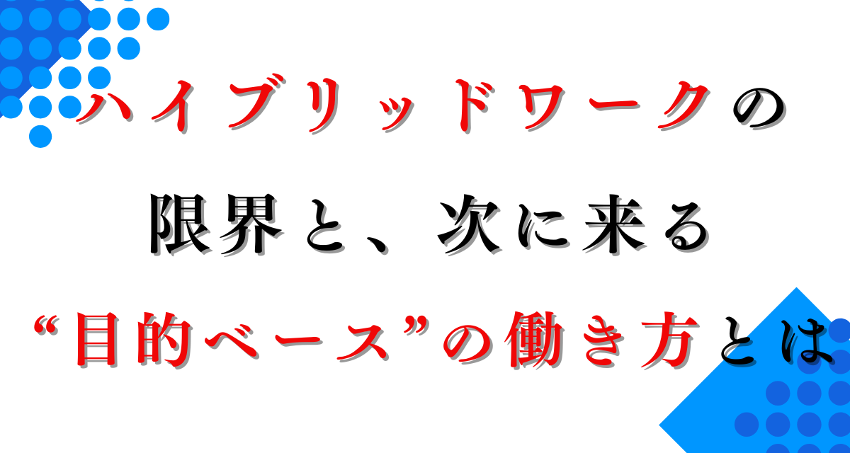 それこそが「目的ベースの働き方」への転換点です。柔軟性に目的を重ねることで、組織の一体感と生産性は確実に進化します